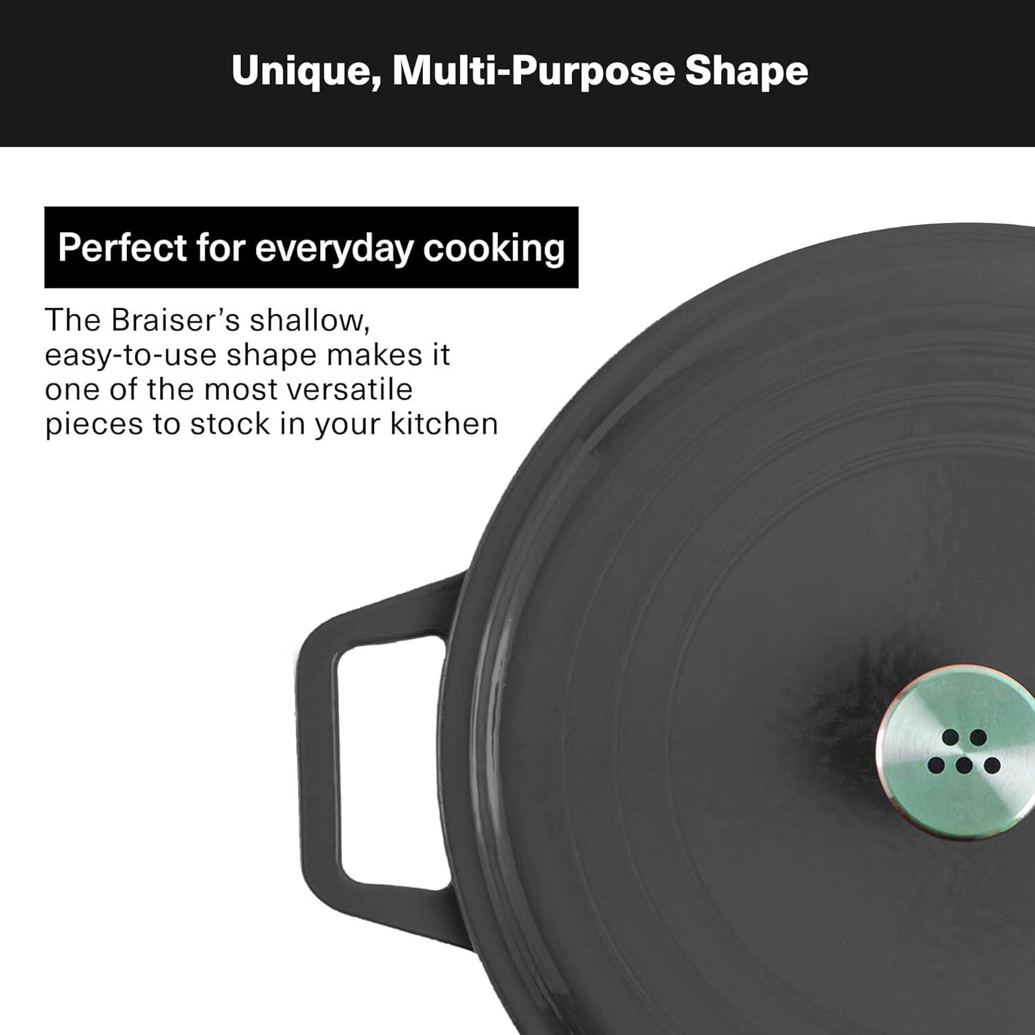 Versatile Multi-Purpose Design: From braising and roasting to baking and frying, the Misen Enameled Cast Iron Braiser offers endless culinary possibilities. Its unique shape and design make it the perfect tool for all your cooking needs.