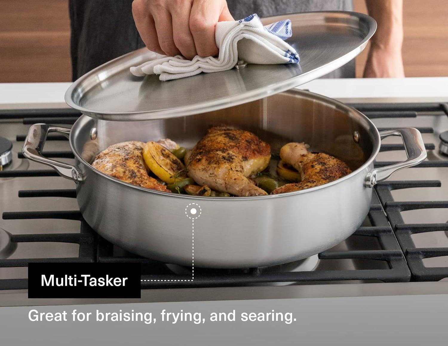 Restaurant Favorite: One of the most flexible stainless cookware pieces available, a rondeau can shallow fry chicken for a weeknight meal, oven-braise beef for a dinner party showstopper and much more.