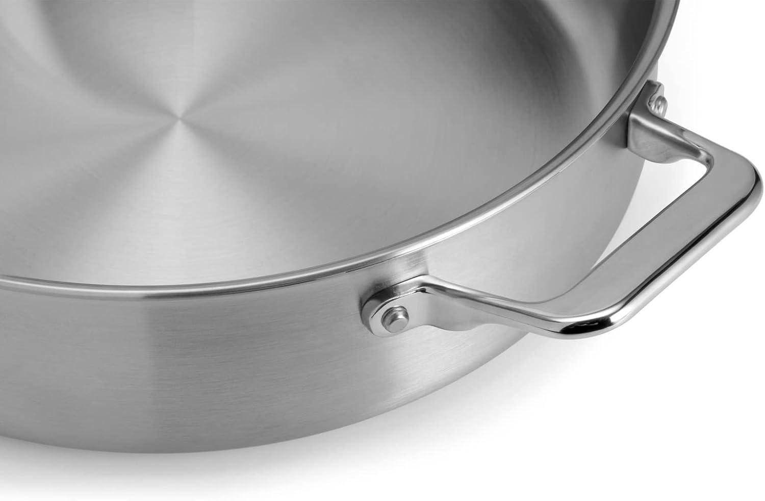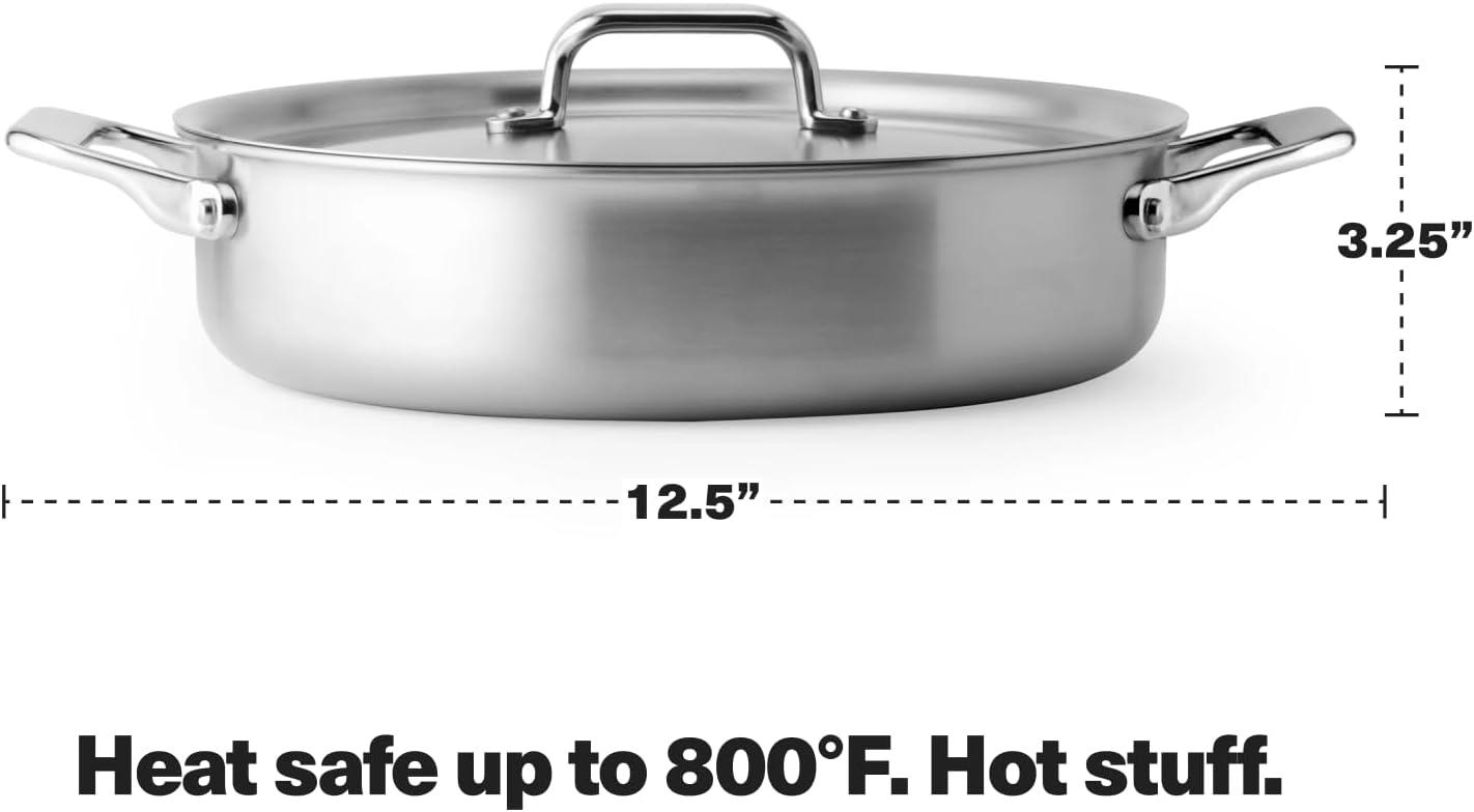 Misen 5-Ply Stainless Steel 6QT Rondeau – Wide, Flat Cooking Surface – Even Heating, Perfect Searing – Durable, Versatile Cookware – Oven-Safe to 800F, Induction Compatible