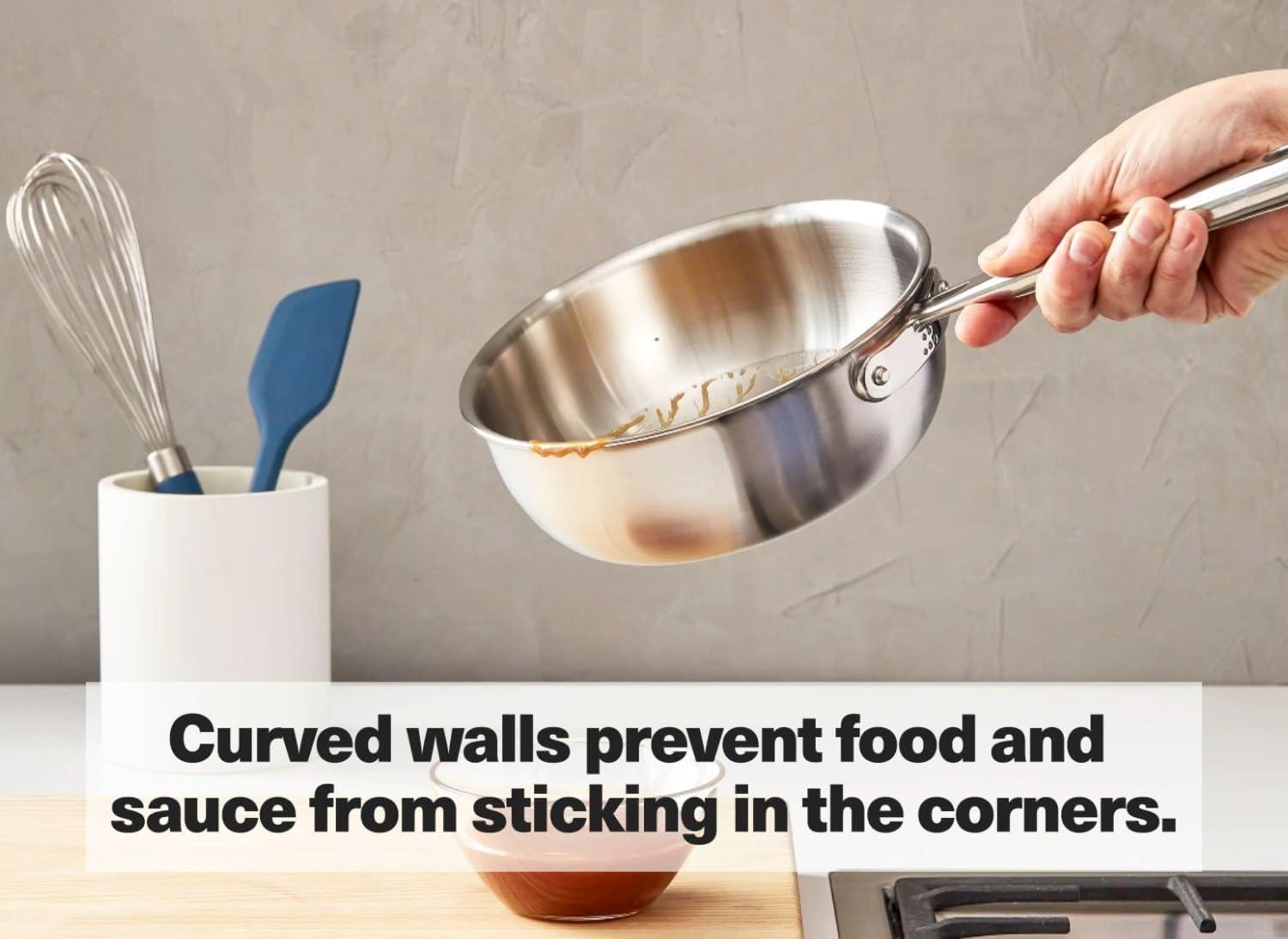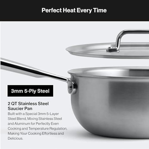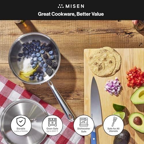 Introducing the Misen 1.5-Quart Stainless Steel Saucier Pan with Lid – Your Ultimate Kitchen Companion! If you've never heard of a saucier pan, don't fret; you're not alone. Once you experience the cooking magic it brings to your kitchen, you'll wonder how you ever lived without it. This saucier pan is a hidden gem favored by professional chefs. Here's why: its unique rounded walls eliminate those pesky corners where food tends to stick and burn. Say goodbye to culinary disasters and hello to easy stirring with spoons and whisks.Crafted from a 3.0mm thick, 5-layer (5-ply) composite of stainless steel and aluminum, it's a work of culinary art. The thick bottom ensures even heat distribution and retention, making sure your sauces, soups, and delicate dishes cook to perfection every time. Plus, it's compatible with gas, electric, and induction stovetops, so no matter your kitchen setup, Misen has you covered.The Misen 3-Quart Stainless Steel Saucier Pan is a non-stick wonder. No more endless scrubbing or burnt-on residue; this pan is a breeze to clean. With our ergonomic handle, you'll enjoy a secure and comfortable grip that stays cool even during high-heat cooking. It's the best 5-ply cookware that money can buy, designed to last a lifetime.So, why choose Misen? Because the right tool makes all the difference, especially in the kitchen. We understand the frustration of having to pick between cheap, low-quality options and overpriced “premium” brands. That's why we've disrupted the traditional retail model. By selling directly to you online, we offer incredible kitchen tools at honest prices, without compromising on quality. Say goodbye to sticky messes, uneven cooking, and flimsy cookware and say hello to a lifetime of culinary excellence, all backed by Misen's commitment to providing you with the finest kitchen essentials.Order yours today and experience the joy of cooking with Misen!