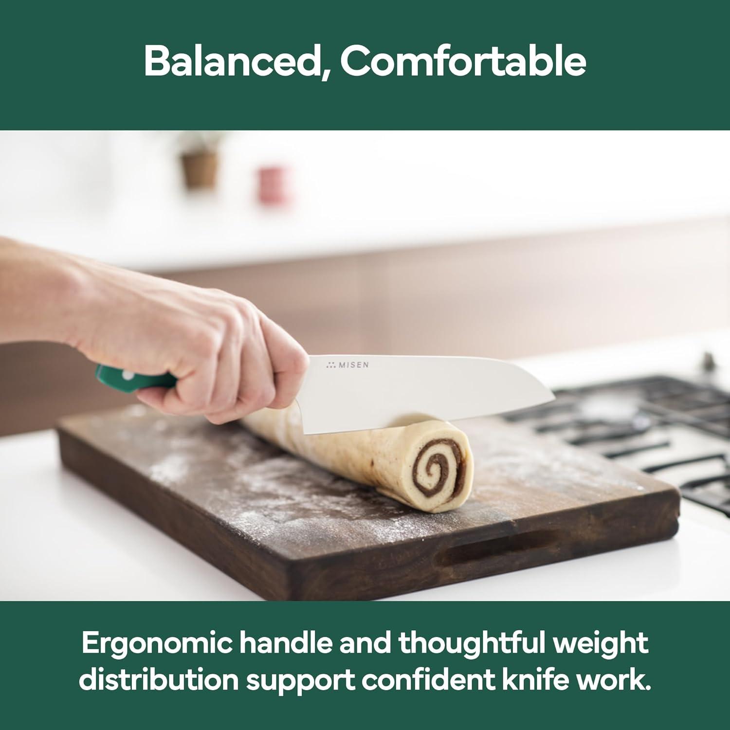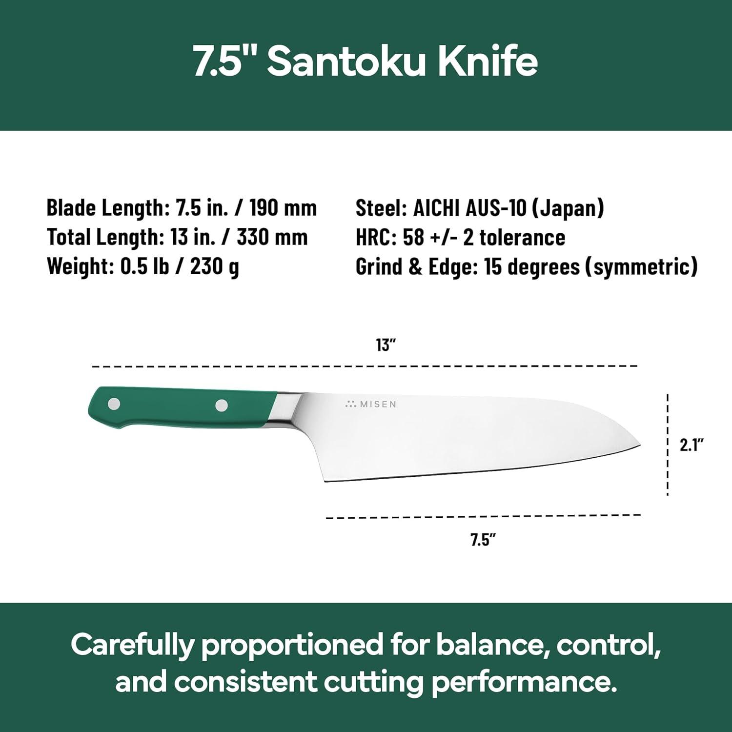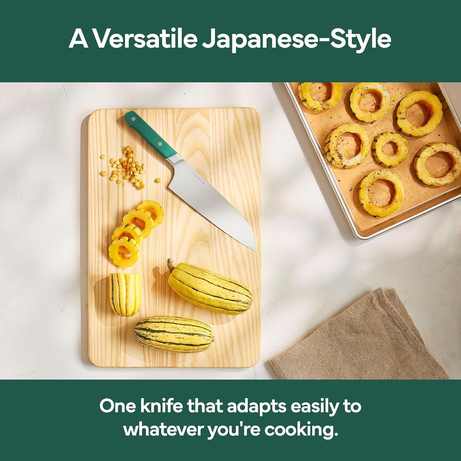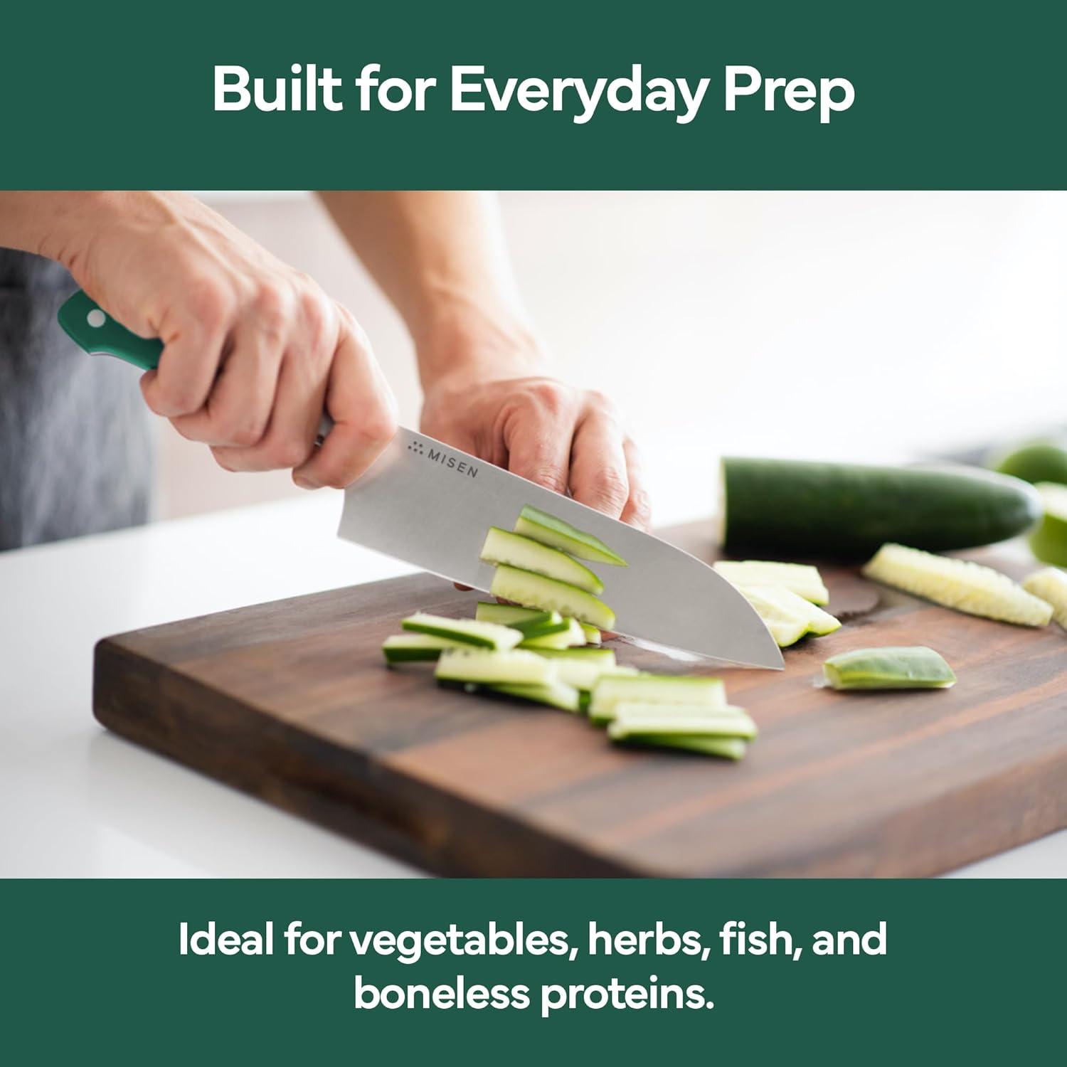 Misen 7.5″ Santoku Knife – High Carbon Stainless Steel – Classic Japanese Chef Knife Design for Cutting, Slicing, and Chopping – Razor Sharp Japanese Style Kitchen Knife – Green(Green)