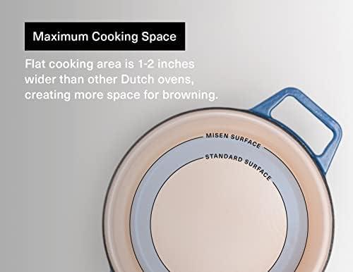 Misen 7 QT Enameled Cast Iron Dutch Oven – Chip-Resistant Enamel Coating – Thick Iron Core For Heat Retention – Large Cooking Surface – Oven Safe, Induction Compatible – Traditional Lid, Black(Blue)