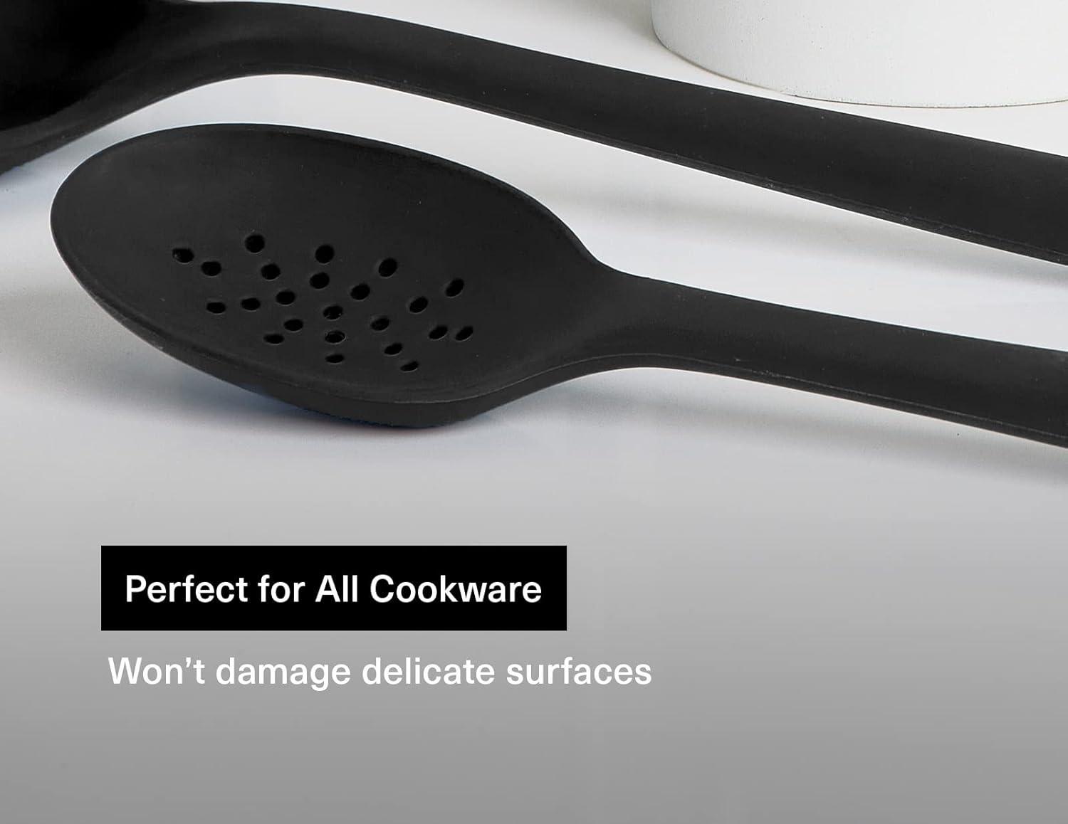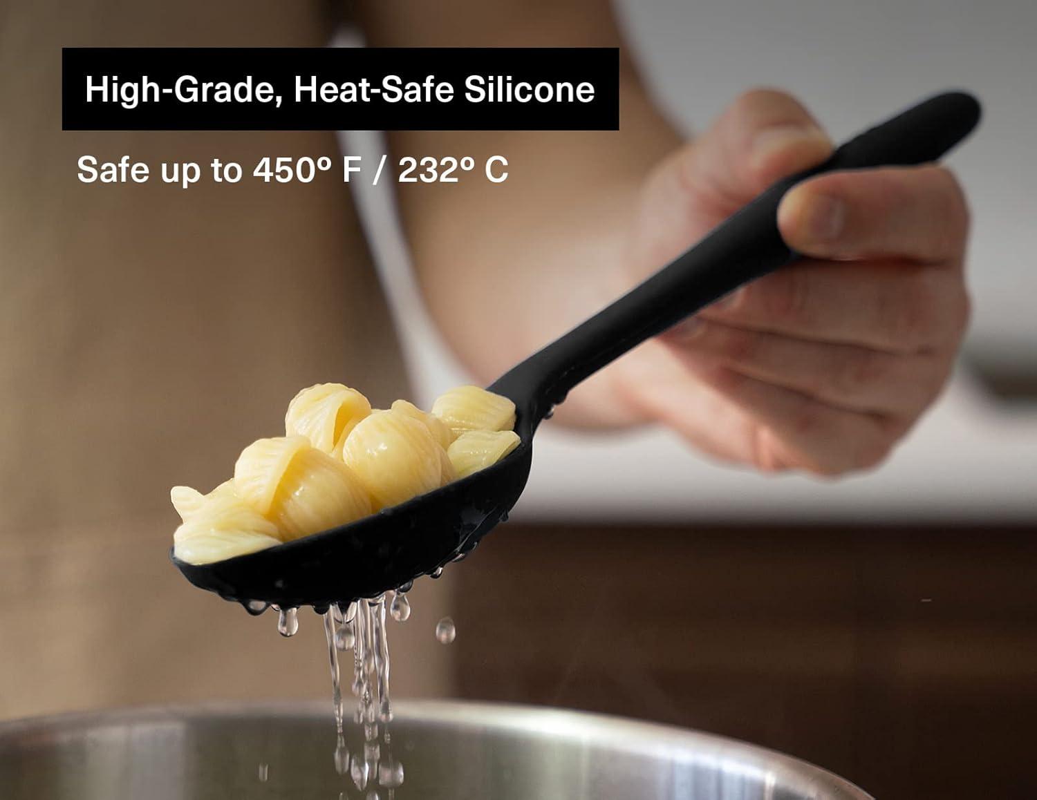 Heat Resistant Silicone: Crafted with a robust nylon core enveloped in premium silicone, our kitchen spoons are your heat-resistant champions, capable of withstanding temperatures up to 450ºF / 232ºC. Stir, mix, and cook with confidence.