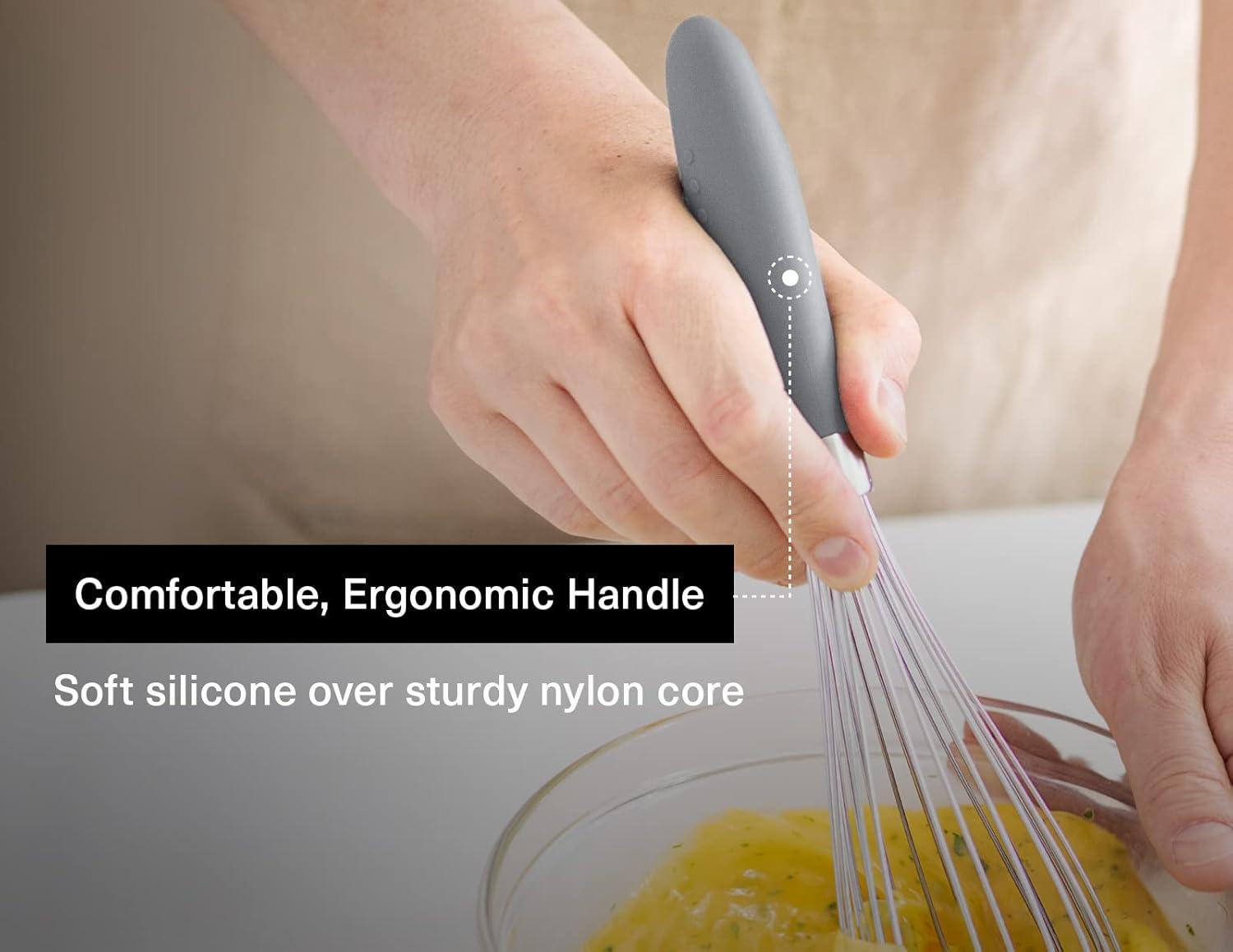 Ergonomic Design, Unmatched Comfort: Indulge in comfortable whisking with the Misen Whisk's thick, heat-resistant silicone handle. Crafted for a comfortable grip, it minimizes strain during extended whisking sessions. The robust stainless steel wires and high-grade silicone construction ensure durability, making it heat-safe up to 450ºF / 232ºC.