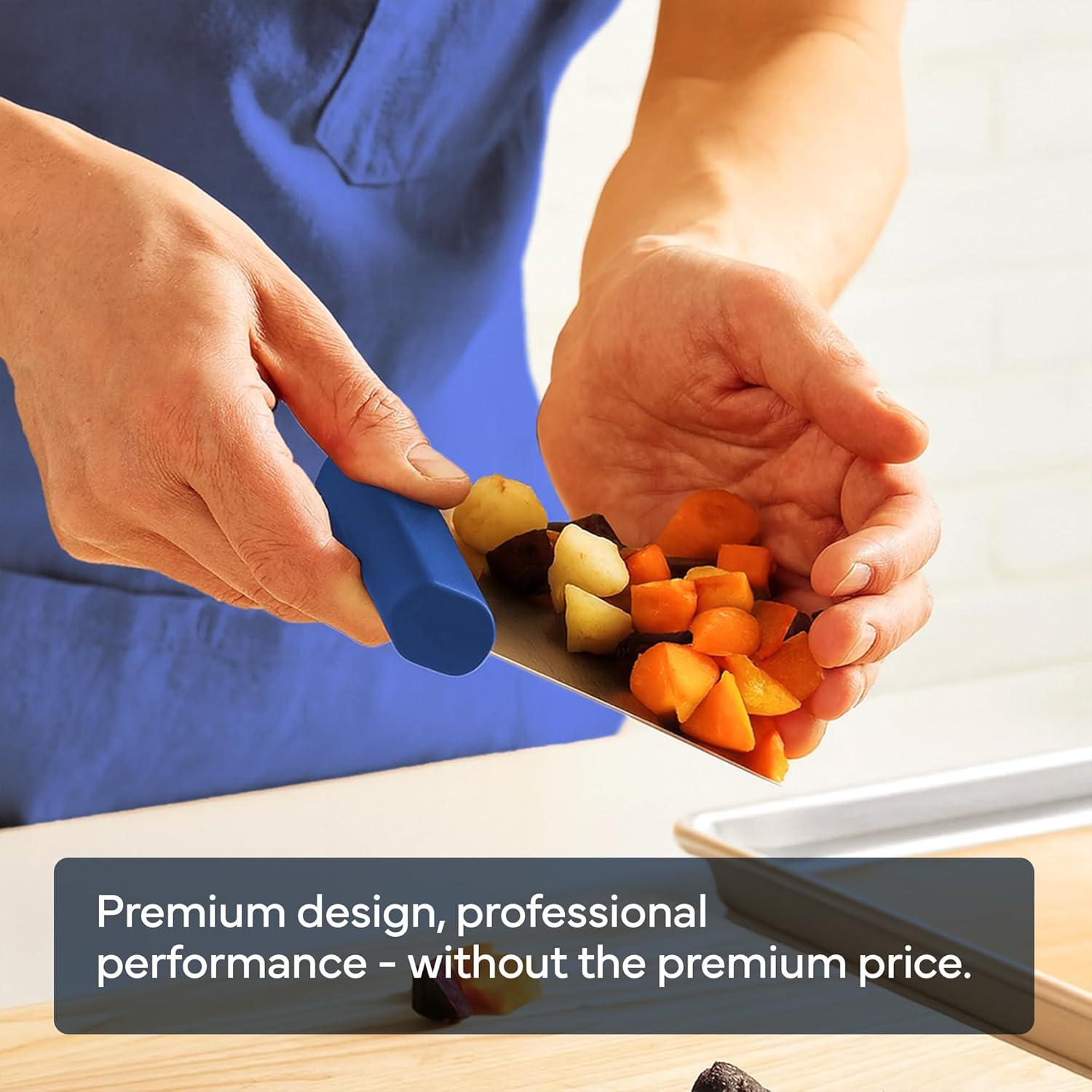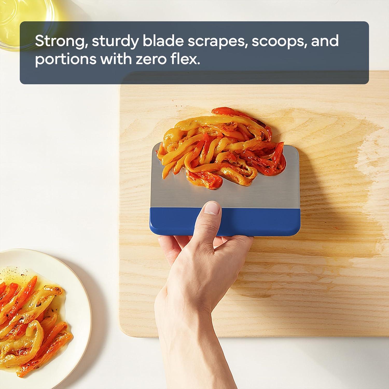 Misen Stainless Steel Bench Scraper – Versatile Food Scraper with Walnut Handle – Ideal for Kitchen, Pastry & Dough – Durable Cutting Board Scraper Tool – Effortless Transfer into Pots & Pans – Black(Blue)
